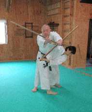 大阪合氣修練道場 は 故斉藤守弘先生から武器技の指導の許可(目録)を戴き武器技を指導しています。